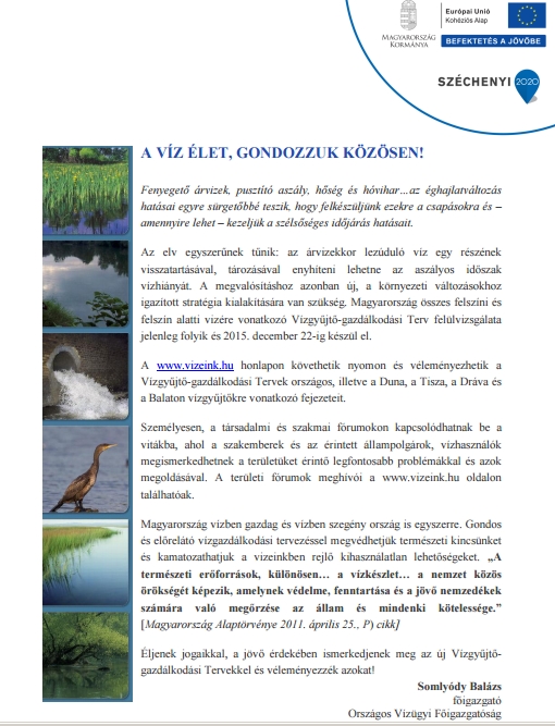 Mondjon véleményt Ön is Magyarország új Vízgyűjtő-gazdálkodási tervéhez!